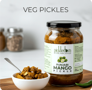 Tangy, spicy, and full of nostalgia — our Pickledom range captures the taste of traditional homemade pickles, made from fresh vegetables and pure, natural ingredients.